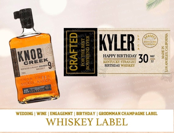 Knob Creek Bourbon personalized birthday labels | Labelyourlife Personalized Knob Creek bourbon bottle birthday labels $8.00 Available Options Number of Labels Size Name on label Age (if desired) Proof requested Description Reviews Here's a unique Birthday gift for the Knob Creek bourbon lover in your life! Give them a truly special gift - a personalized bottle Knob Creek Bourbon!
